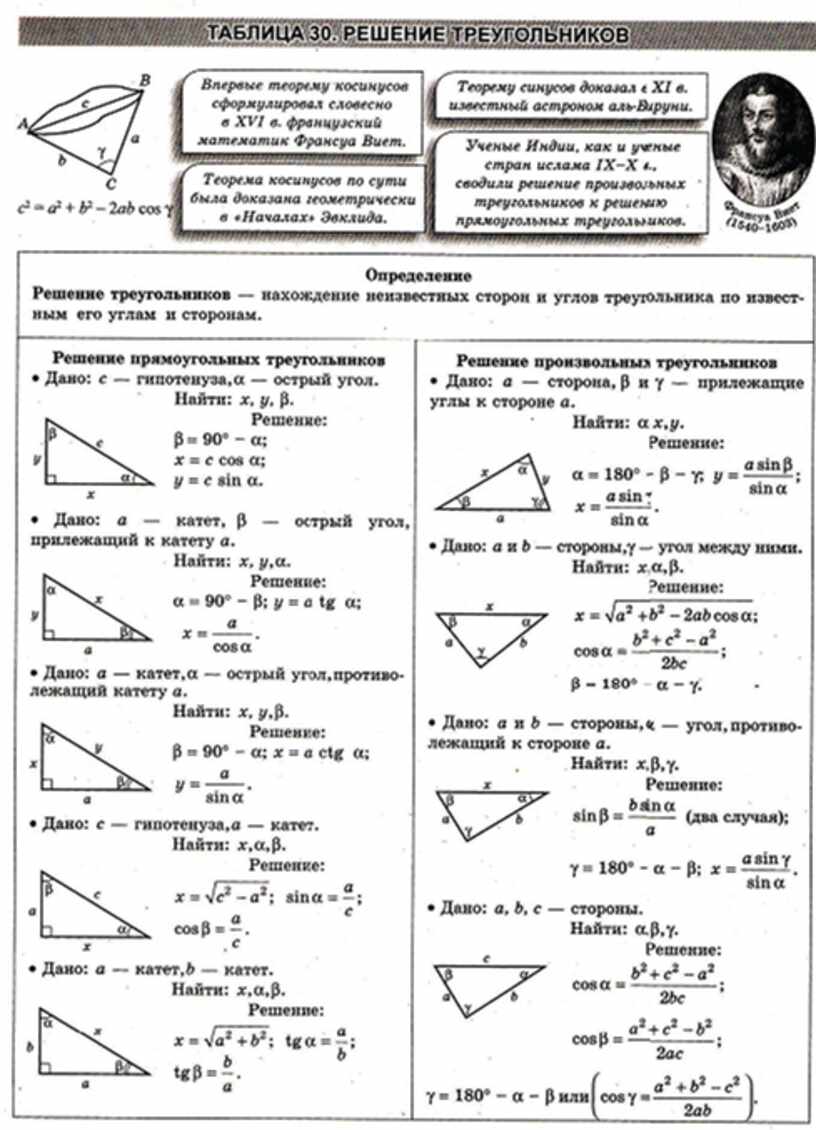 Геометрия в схемах, терминах, таблицах