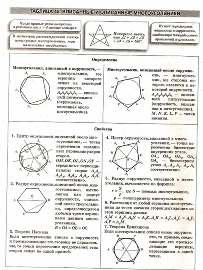 Геометрия в схемах, терминах, таблицах