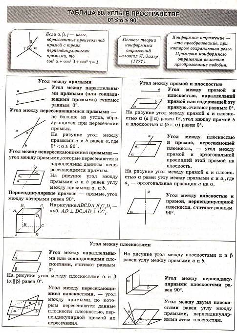 Геометрия в схемах, терминах, таблицах