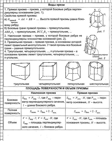 Геометрия в таблицах 10-11кл