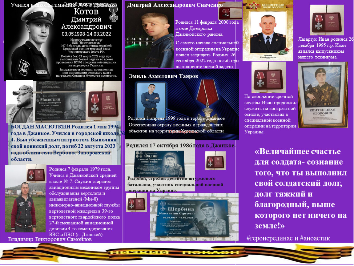Объект исследования проекта выпускники и герои СВО г. Джанкой