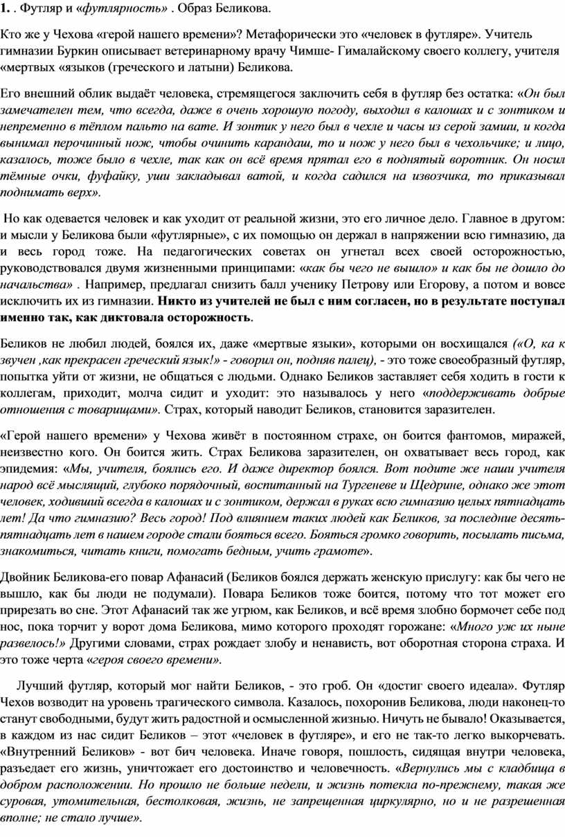 Кто же у Чехова «герой нашего времени»? Метафорически это «человек в футляре». Учитель гимназии Буркин описывает ветеринарному врачу Чимше- Гималайскому своего коллегу, учителя «мертвых «языков (греческого и латыни) Беликова.