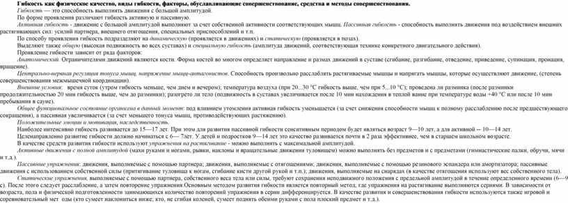 Гибкость как физическое качество, виды гибкости, факторы, обуславливающие совершенствование, средства и методы совершенствования.