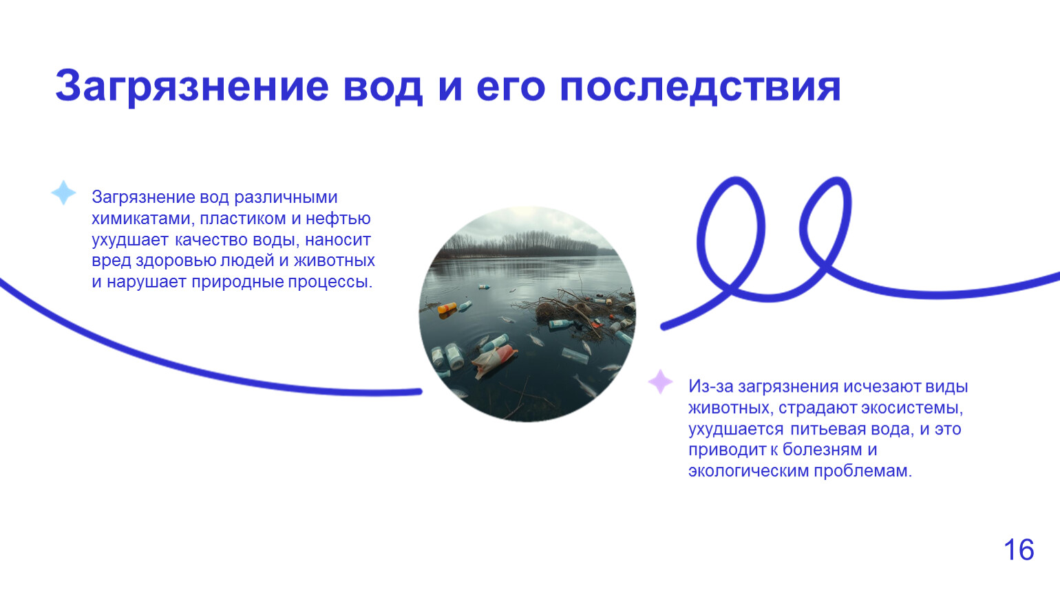 Загрязнение вод различными химикатами, пластиком и нефтью ухудшает качество воды, наносит вред здоровью людей и животных и нарушает природные процессы.