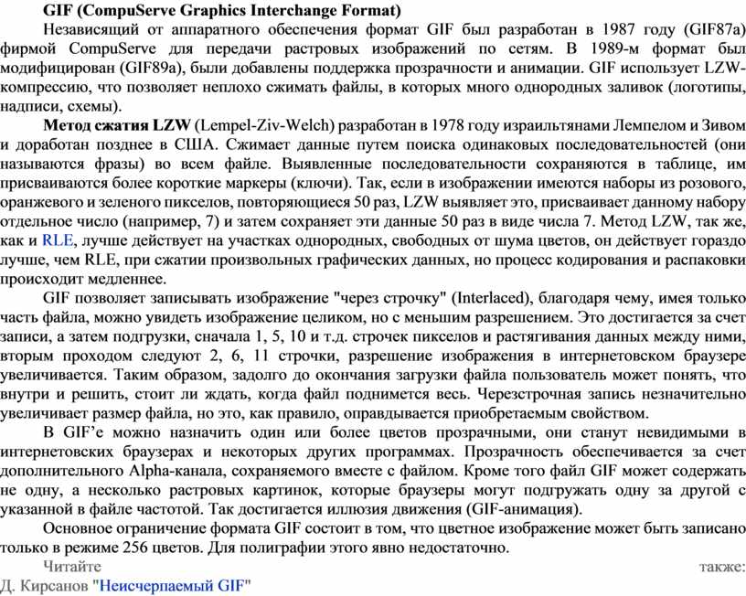 Основное ограничение формата GIF состоит в том, что цветное изображение может быть записано только в режиме 256 цветов. Для полиграфии этого явно недостаточно.