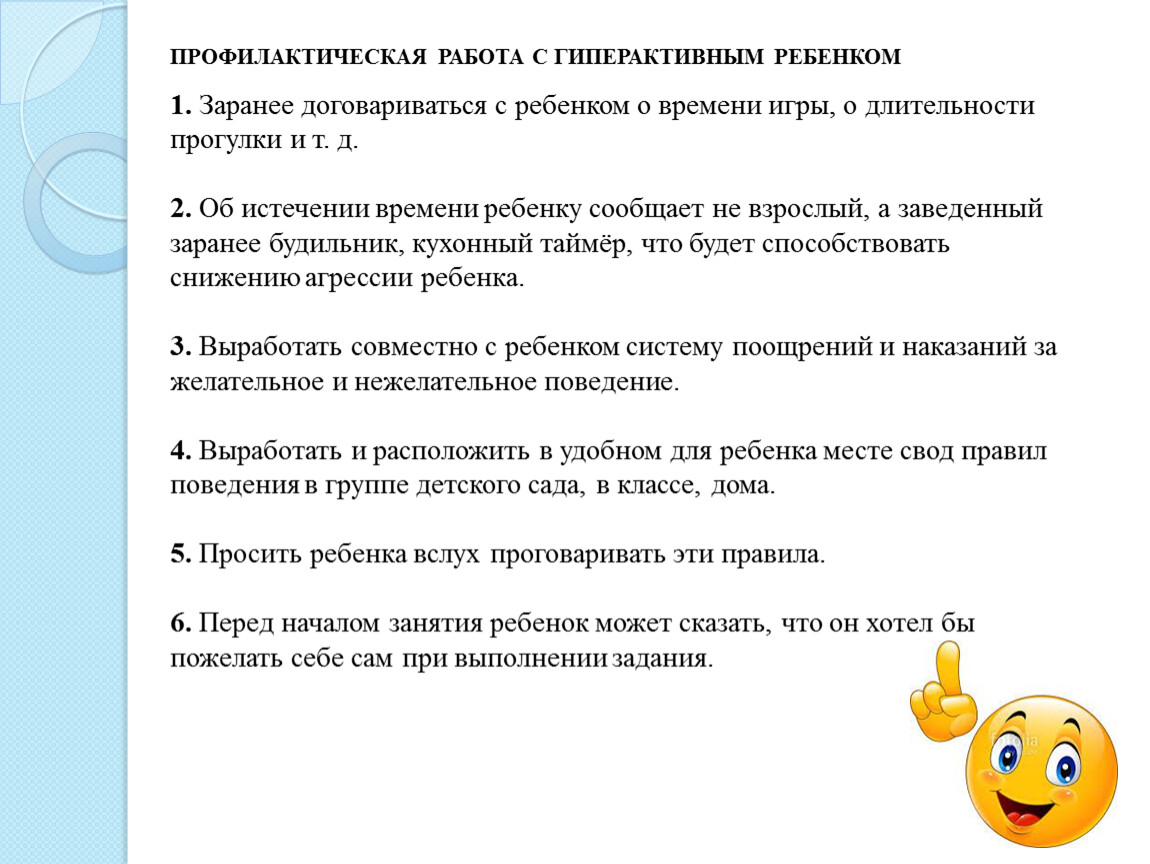 ПРОФИЛАКТИЧЕСКАЯ РАБОТА С ГИПЕРАКТИВНЫМ РЕБЕНКОМ