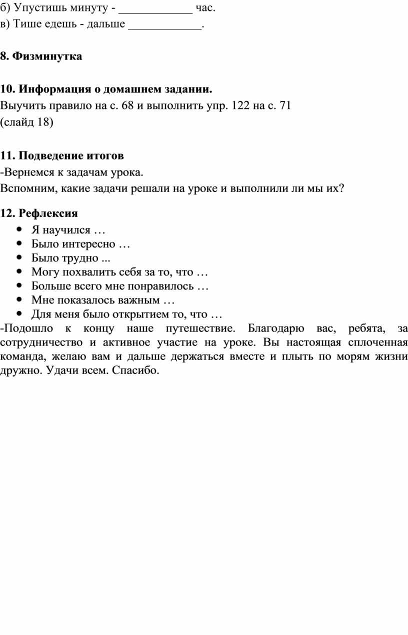 -Подошло к концу наше путешествие. Благодарю вас, ребята, за сотрудничество и активное участие на уроке. Вы настоящая сплоченная команда, желаю вам и дальше держаться вместе и плыть по морям жизни дружно. Удачи всем. Спасибо.