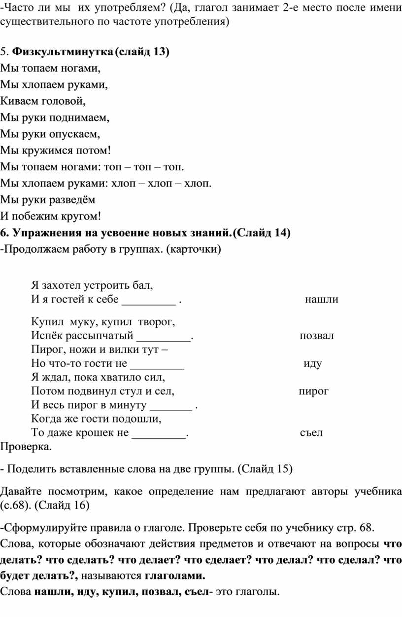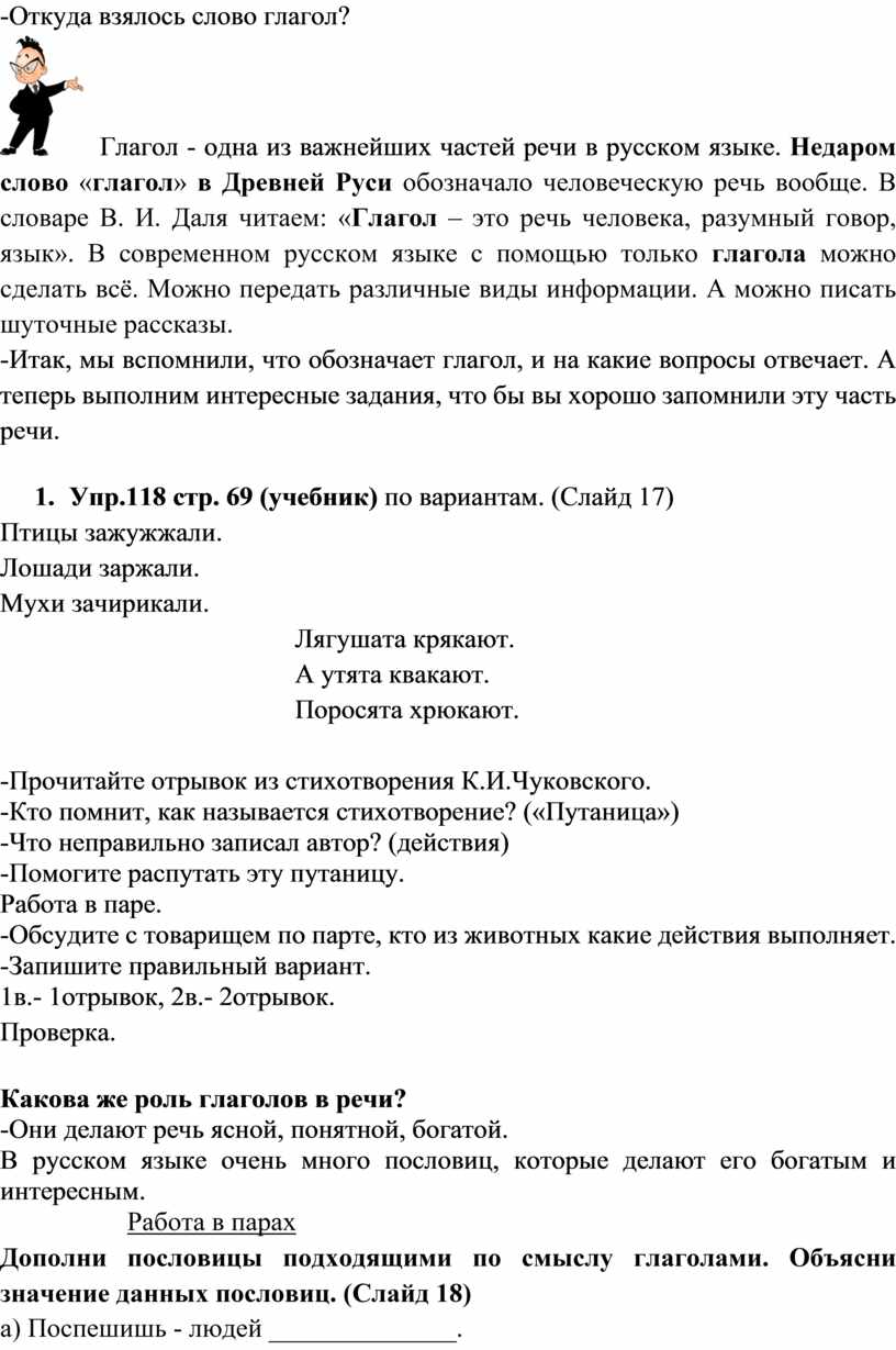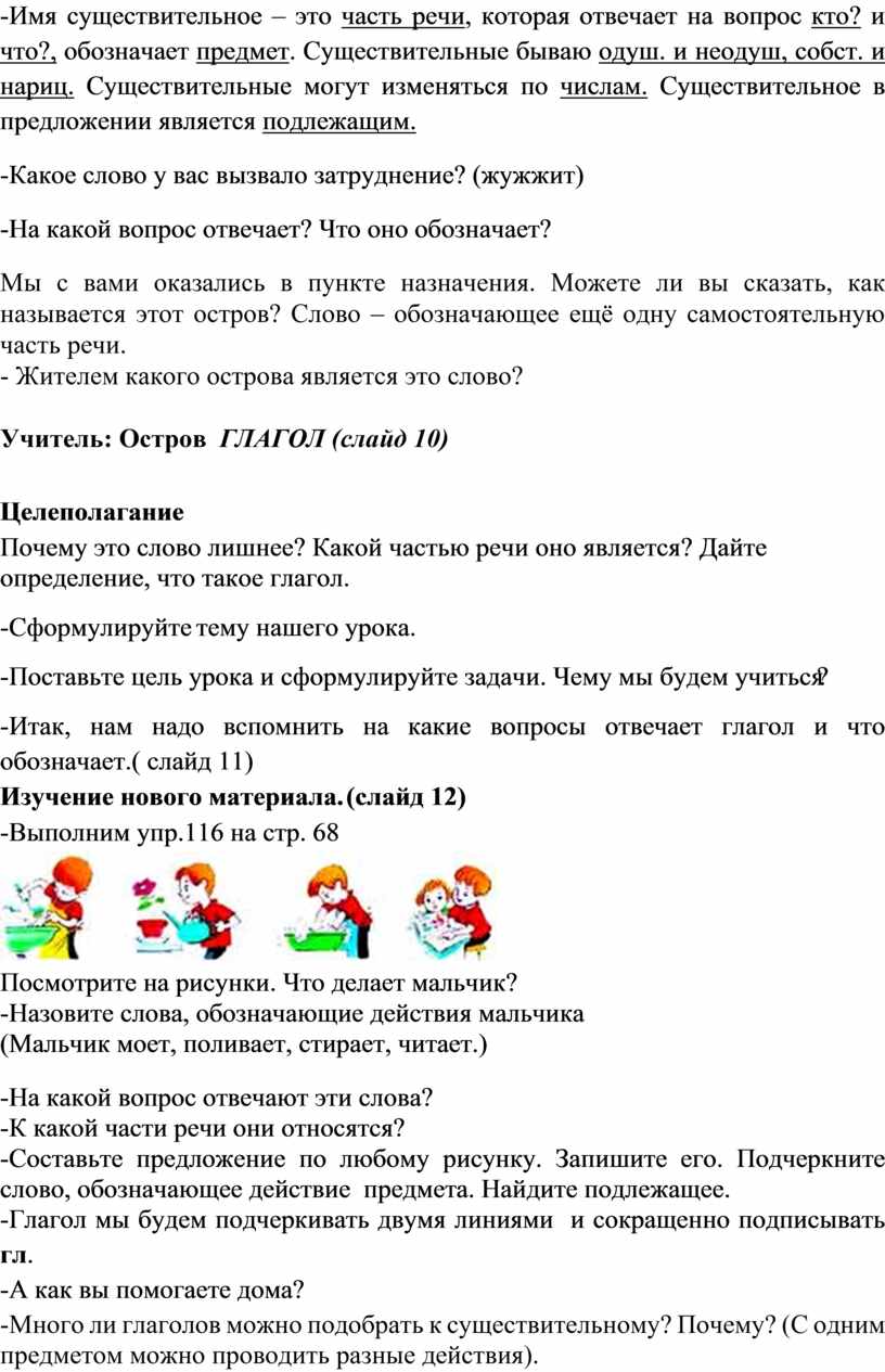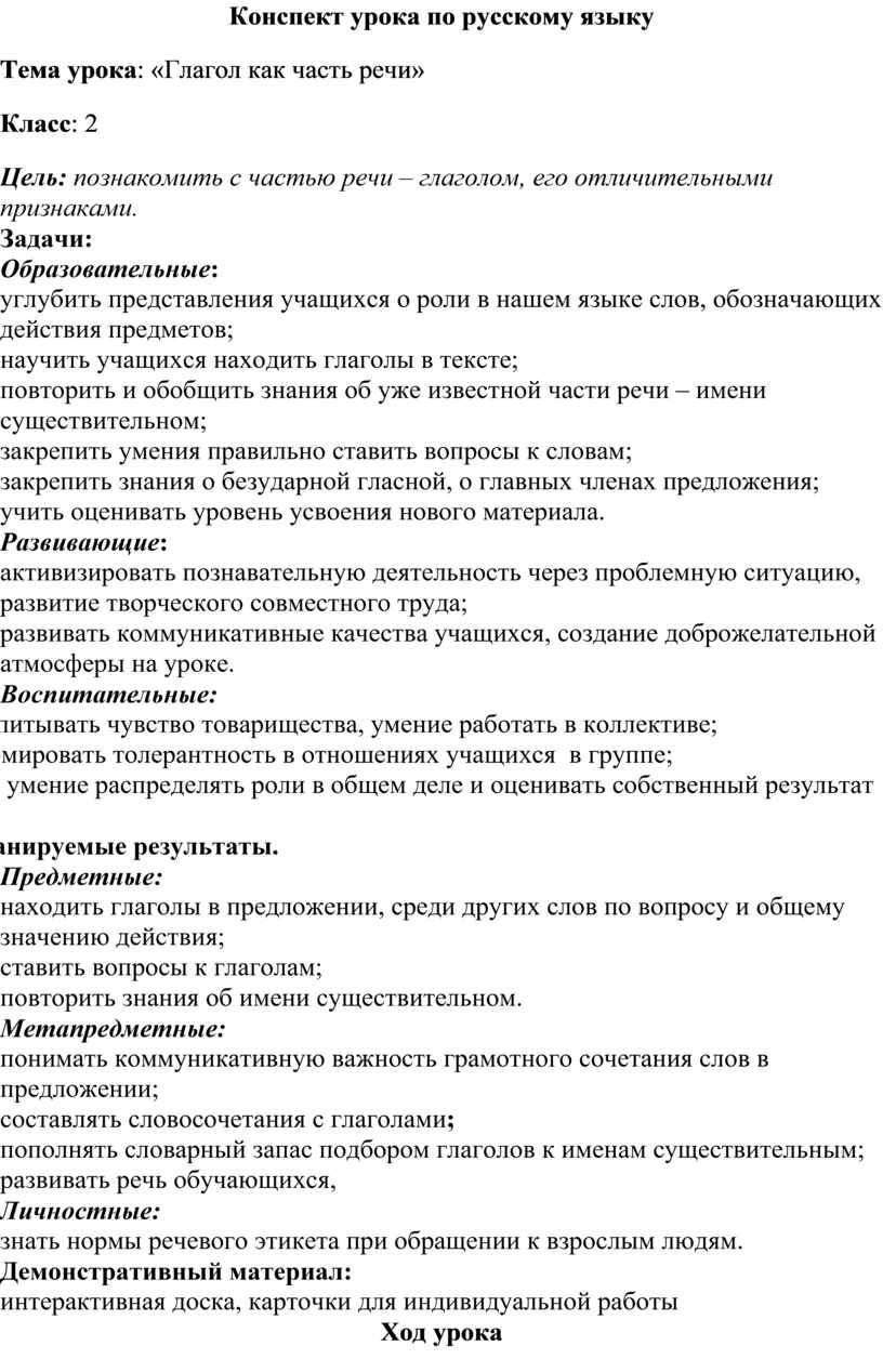 Цель: познакомить с частью речи – глаголом, его отличительными признаками.