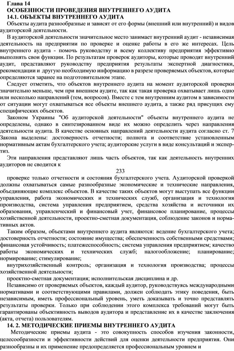 14.1. ОБЪЕКТЫ ВНУТРЕННЕГО АУДИТА