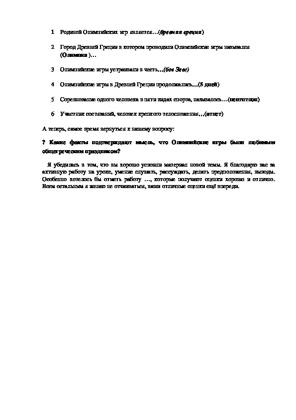 Сегодня на уроке, я узнал, что…1 Родиной Олимпийских игр является…(древняя греция)