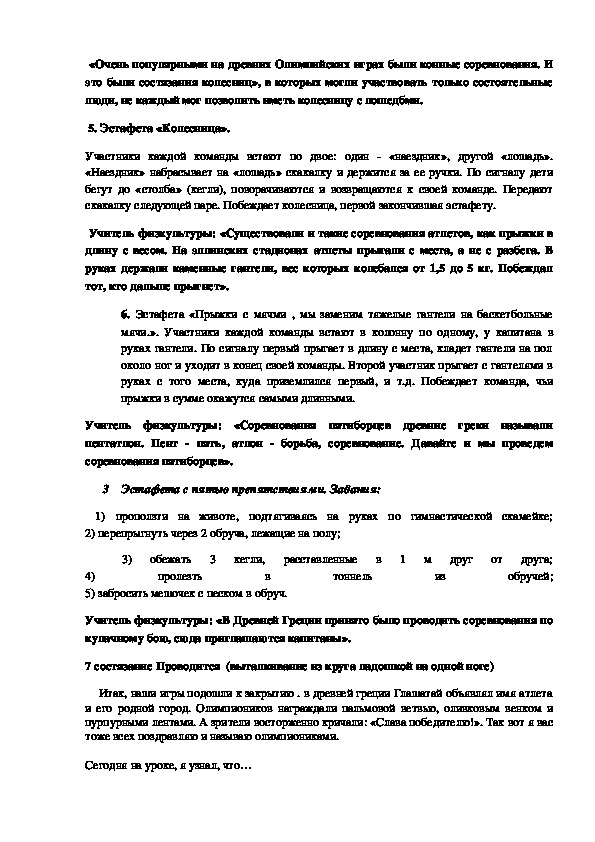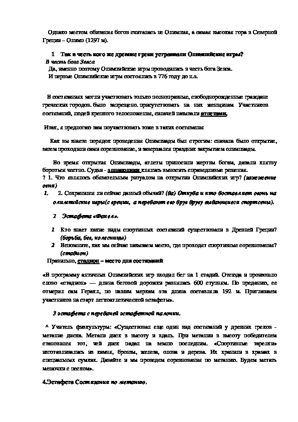 Учитель физкультуры: «В Древней Греции принято было проводить соревнования по