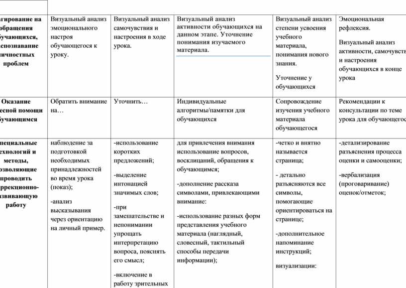 Визуальный анализ самочувствия и настроения в ходе урока. |