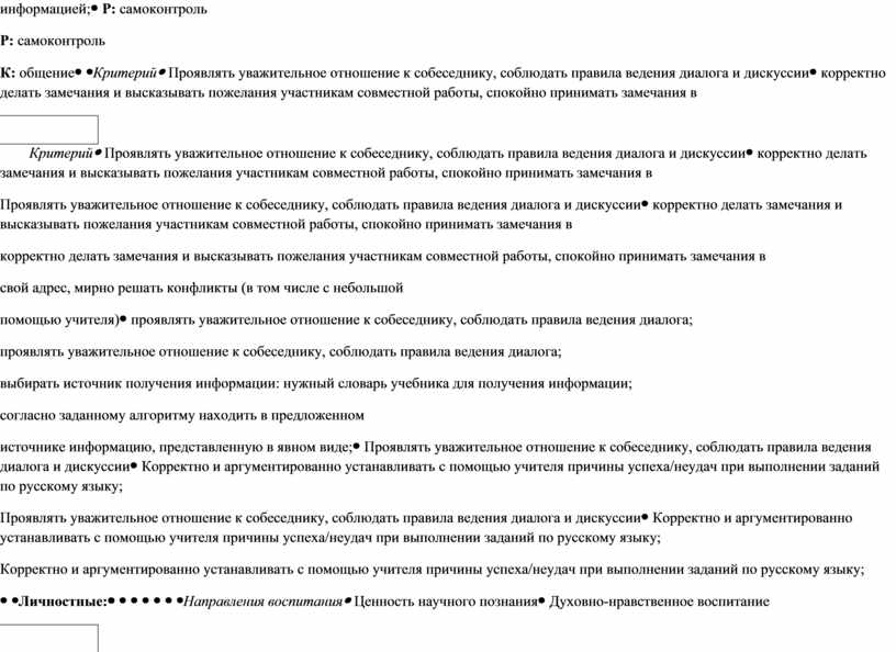 проявлять уважительное отношение к собеседнику, соблюдать правила ведения диалога; выбирать источник получения информации: нужный словарь учебника для получения информации; согласно заданному алгоритму находить в предложенном источнике информацию, представленную в явном виде; |