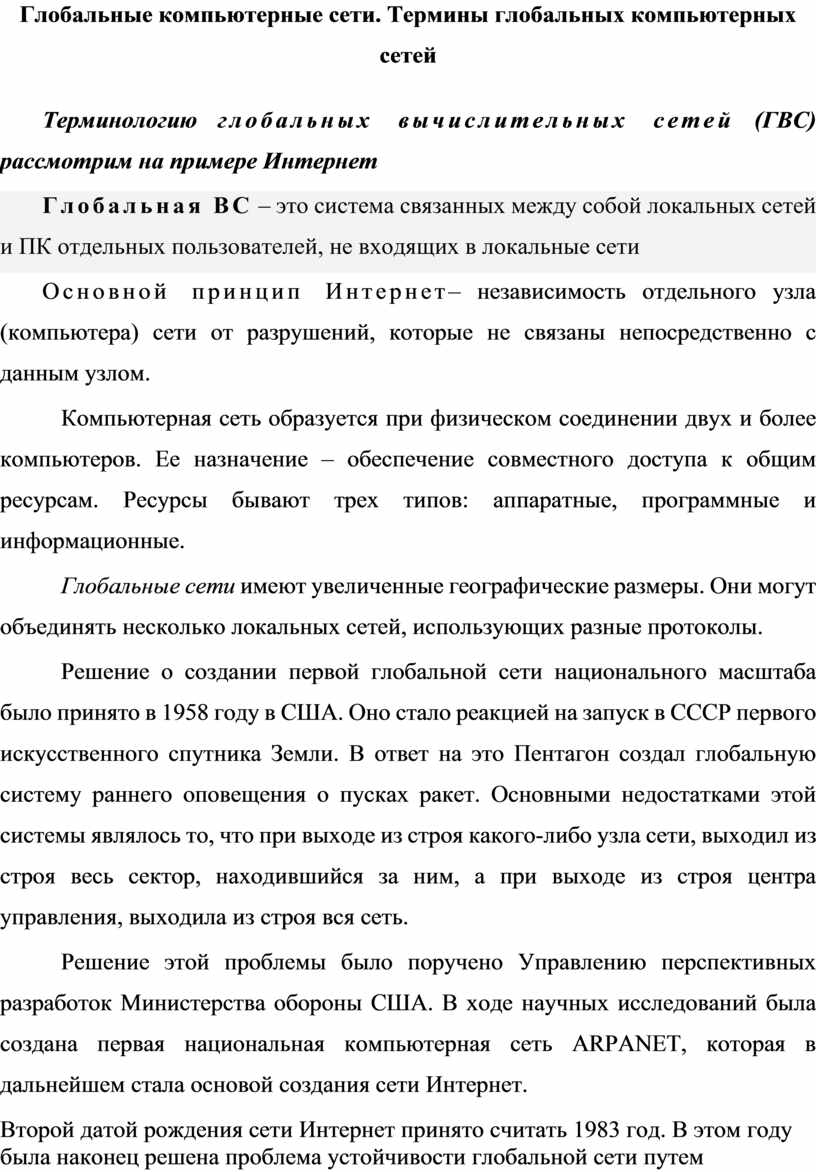 Глобальные компьютерные сети. Термины глобальных компьютерных сетей