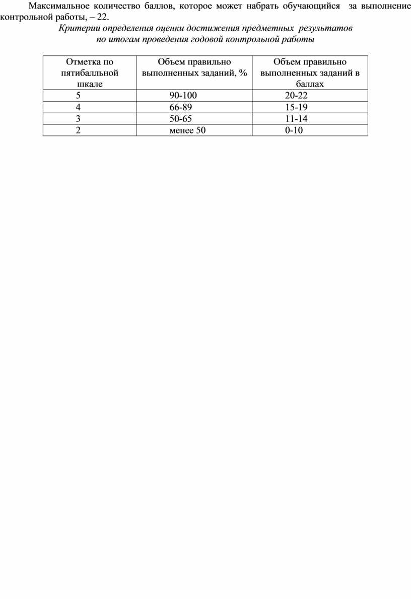 Максимальное количество баллов, которое может набрать обучающийся за выполнение контрольной работы, – 22.