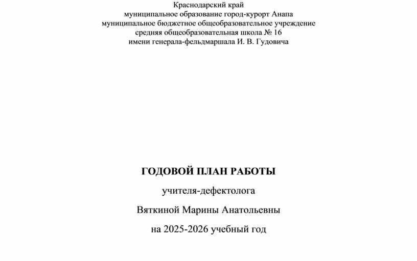 ГОДОВОЙ ПЛАН РАБОТЫ