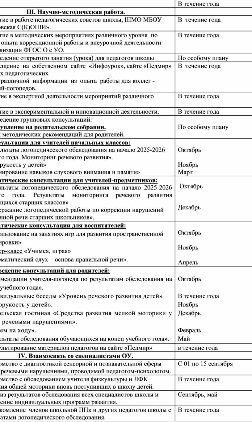 III. Научно-методическая работа. |