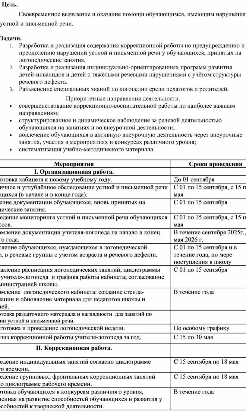 7. Составление расписания логопедических занятий, циклограммы работы учителя-логопеда и графика работы кабинета; согласование их с администрацией школы. |