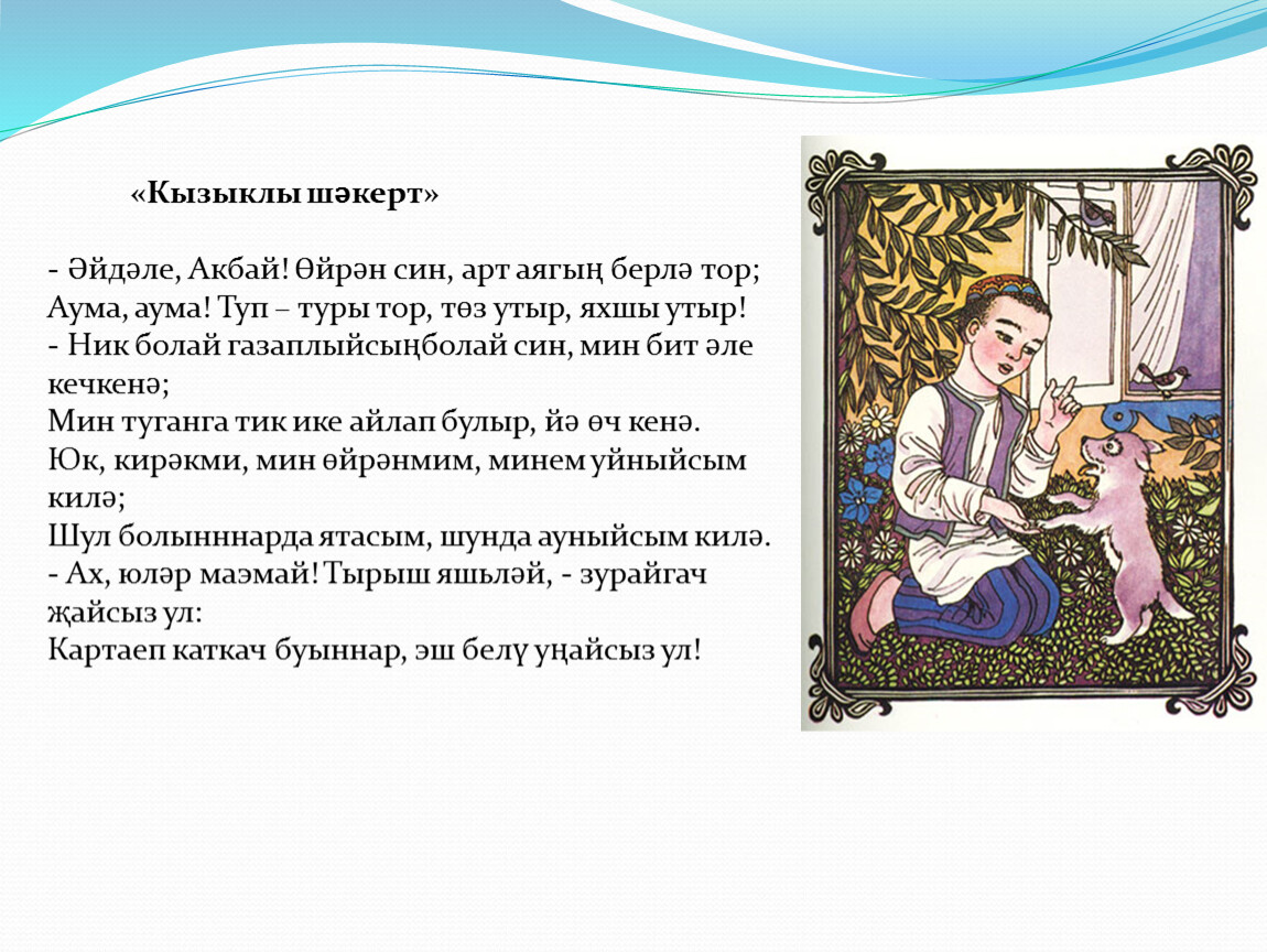Г. Тукай кечкенәдән табигатьне, җан ияләрен яраткан, аларга карата миһербанлы, шәфкатьле булырга өндәгән.