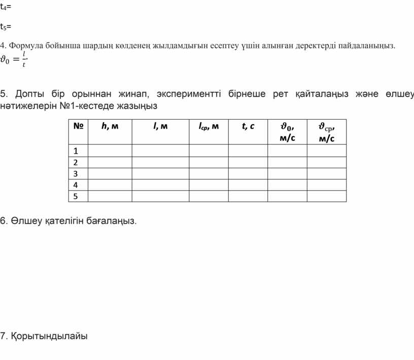 4. Формула бойынша шардың көлденең жылдамдығын есептеу үшін алынған деректерді пайдаланыңыз.