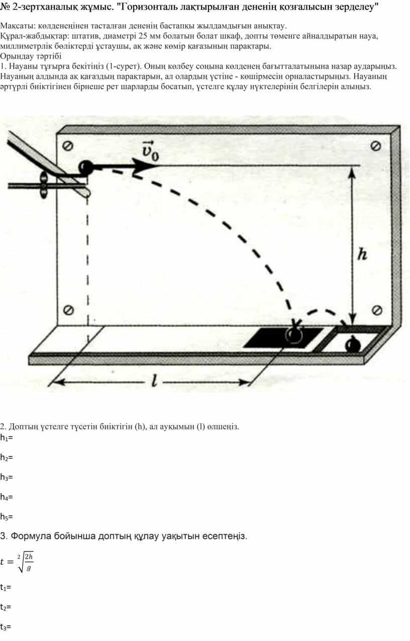 № 2-зертханалық жұмыс. "Горизонталь лақтырылған дененің қозғалысын зерделеу"