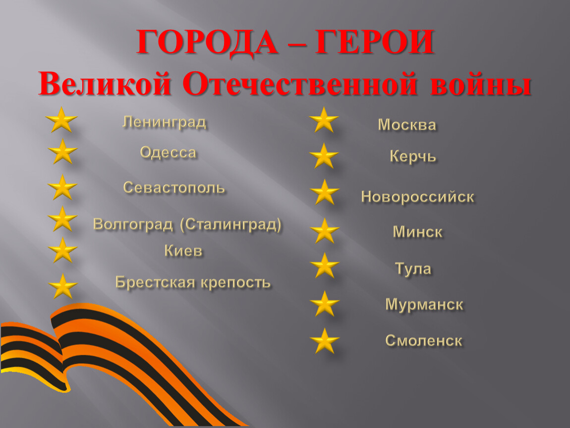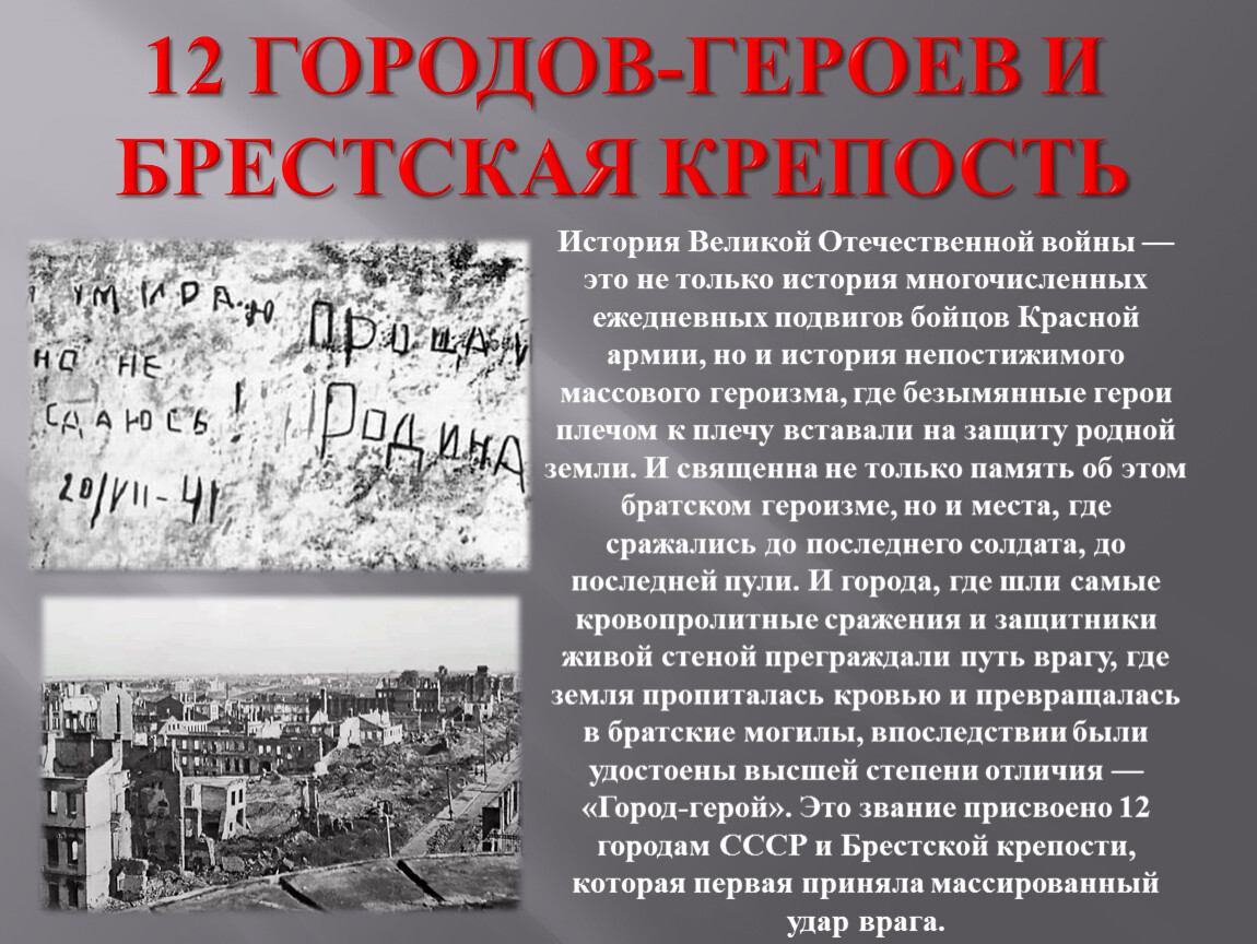 12 городов-героев и Брестская крепость