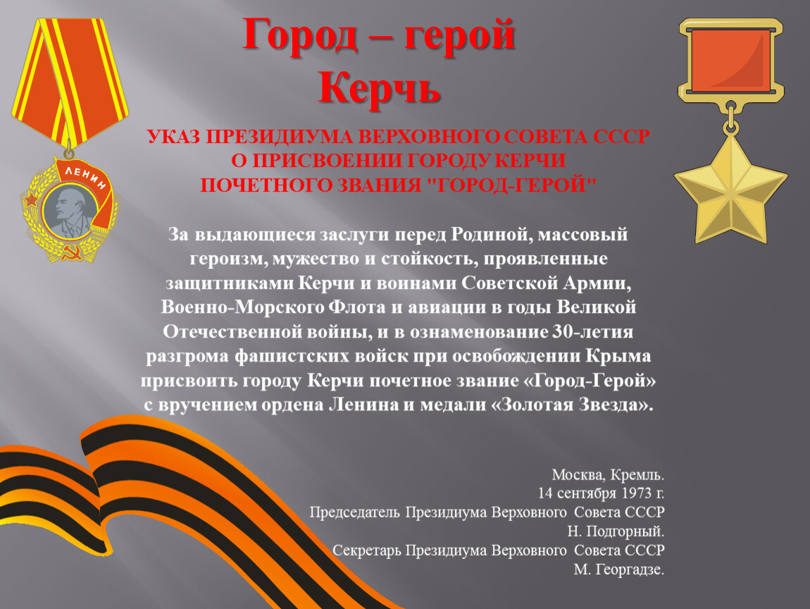 УКАЗ ПРЕЗИДИУМА ВЕРХОВНОГО СОВЕТА СССРО ПРИСВОЕНИИ ГОРОДУ КЕРЧИ
