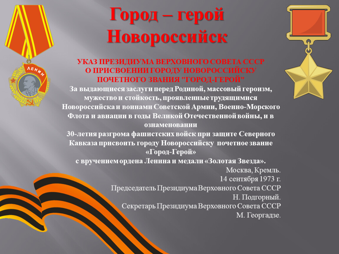 УКАЗ ПРЕЗИДИУМА ВЕРХОВНОГО СОВЕТА СССРО ПРИСВОЕНИИ ГОРОДУ НОВОРОССИЙСКУ