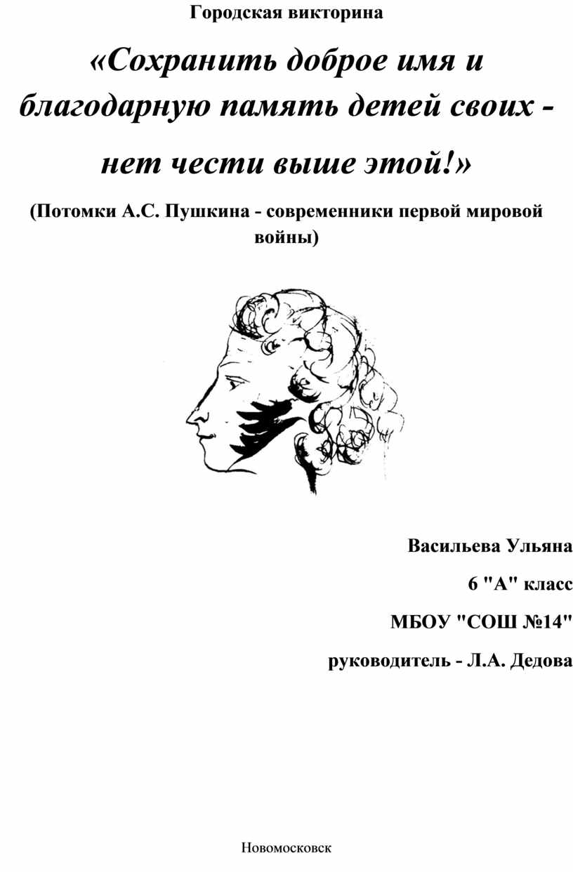 (Потомки А.С. Пушкина - современники первой мировой войны)
