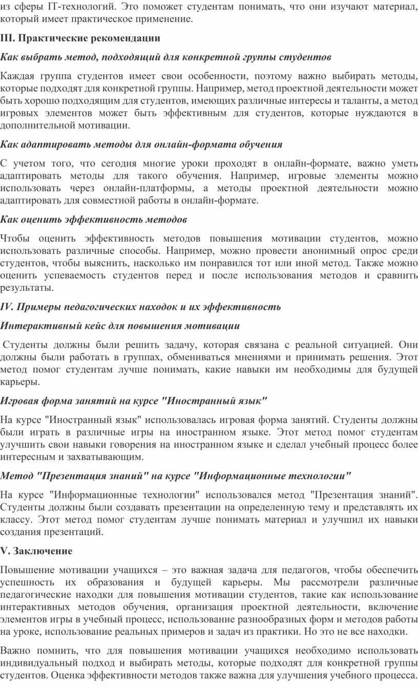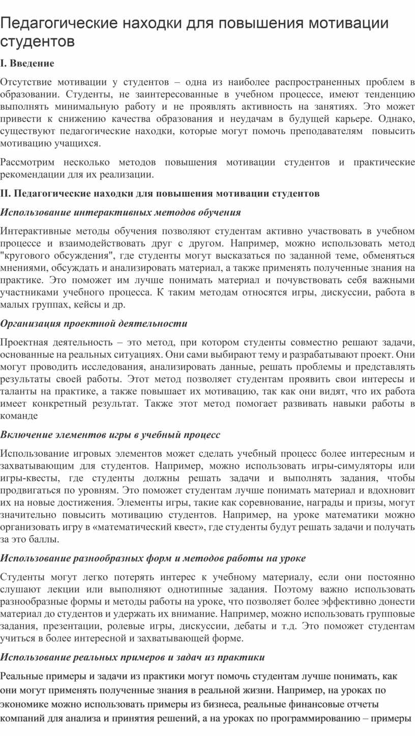 II. Педагогические находки для повышения мотивации студентов