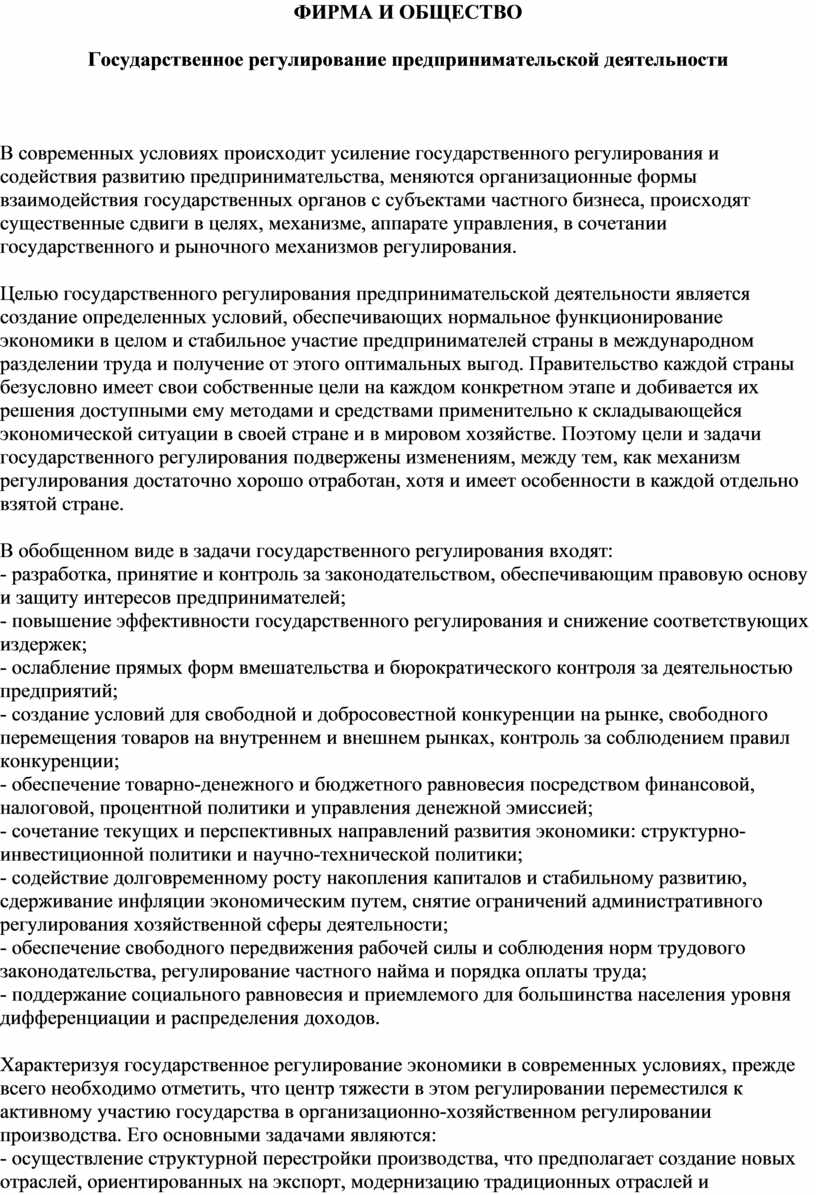 Государственное регулирование предпринимательской деятельности