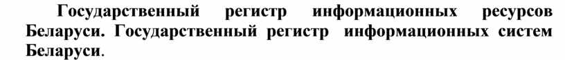 В 2009 г. в Беларуси создан Государственный регистр информационных систем. Положение о ведении государственного регистра информационных систем утверждено Постановлением Совета Министров Республики Беларусь