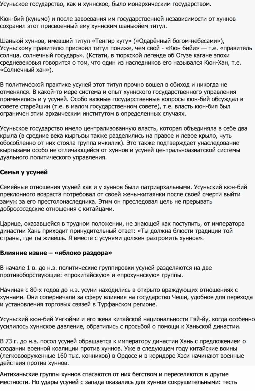 Усуньское государство, как и хуннское, было монархическим государством.