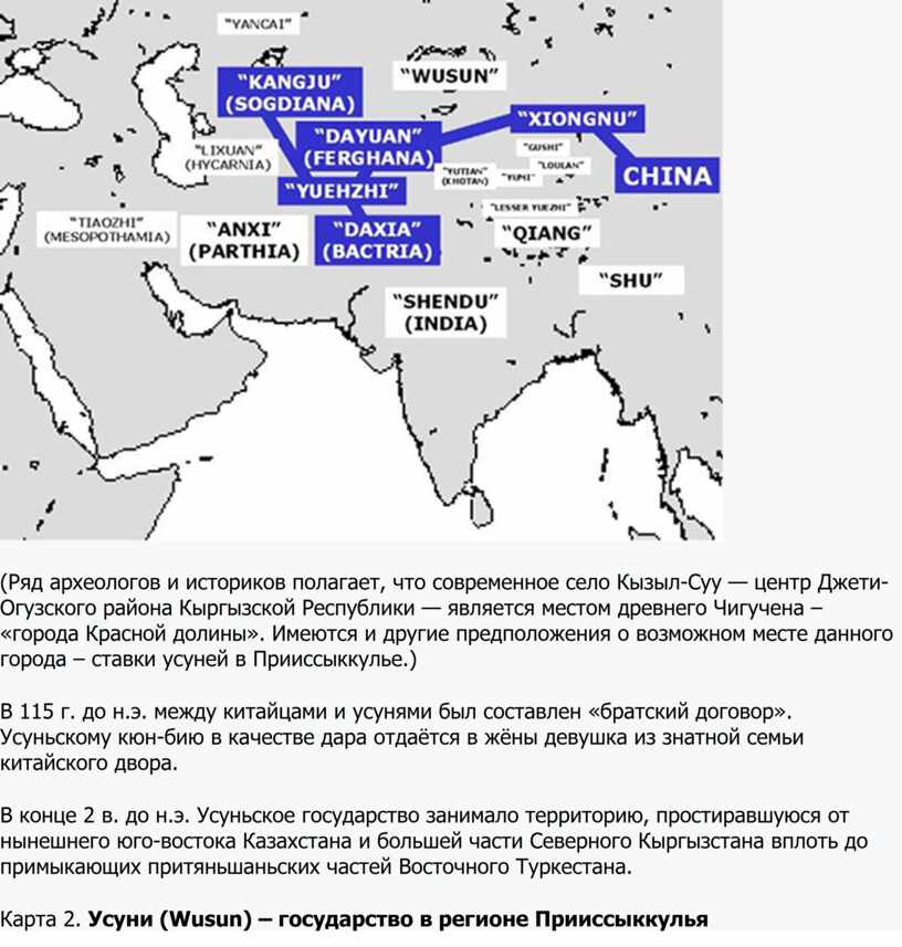Карта 2. Усуни (Wusun) – государство в регионе Прииссыккулья