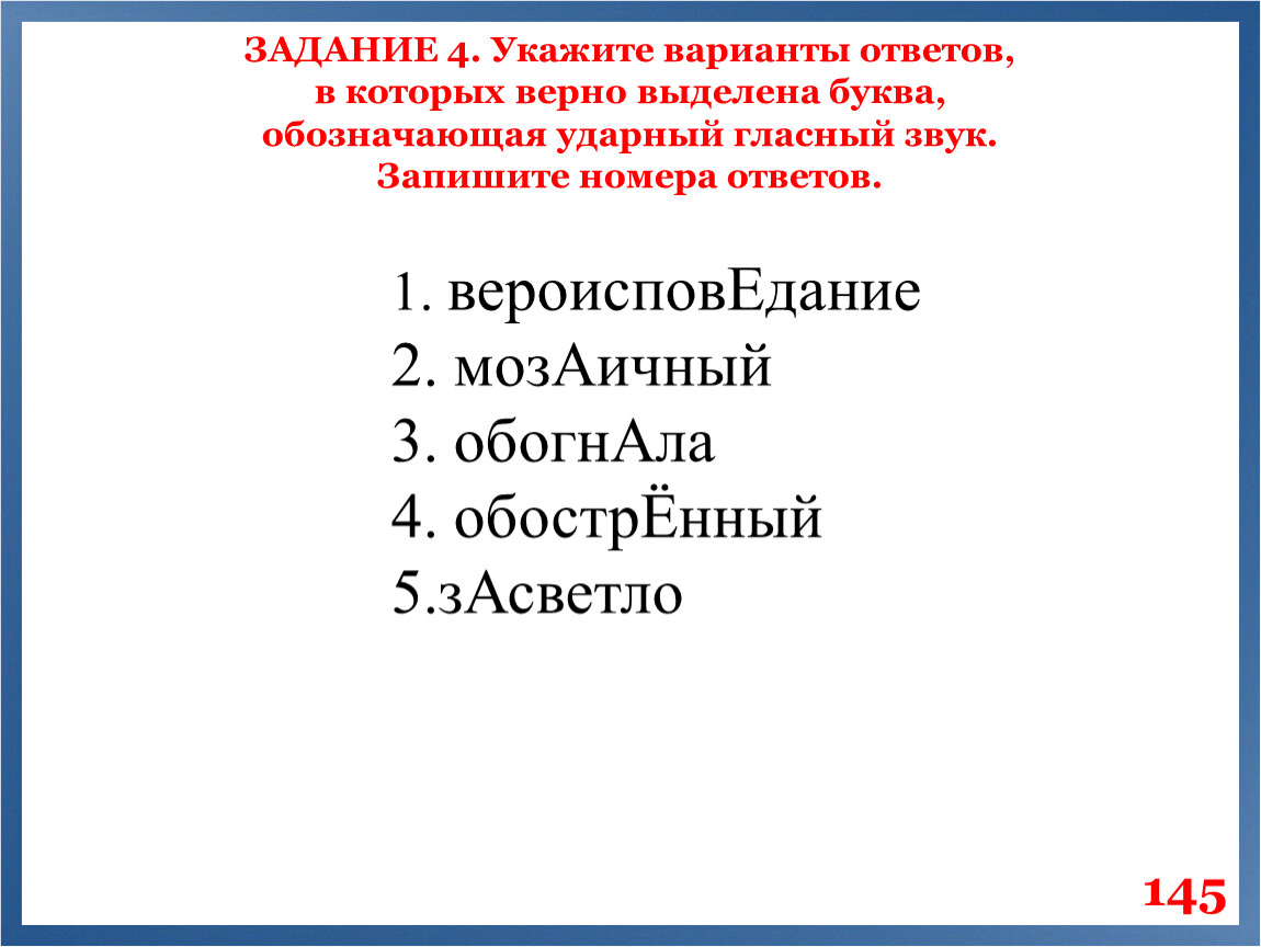 в которых верно выделена буква,