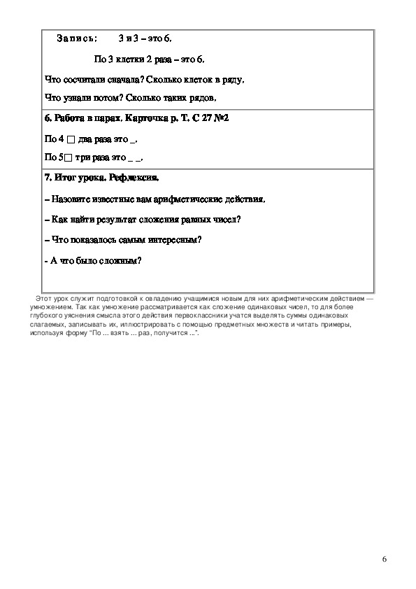 Этот урок служит подготовкой к овладению учащимися новым для них арифметическим действием —