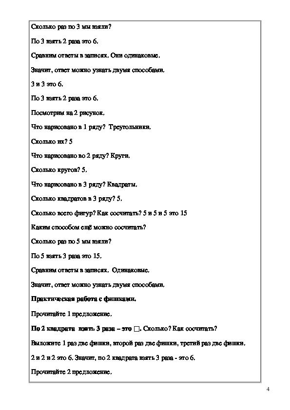 1) рассмотреть разные способы нахождения результата сложения равных чисел;