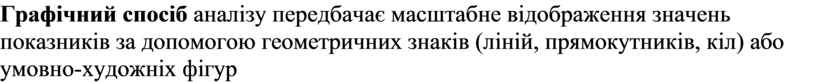 Графічний спосіб аналізу передбачає масштабне відображення значень показників за допомогою геометричних знаків (ліній, прямокутників, кіл) або умовно-художніх фігур