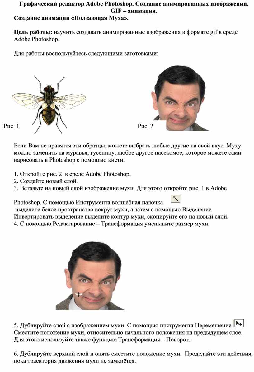 7. Отключите все слои кроме самого первого с изображением Мистера Бина и следующего за ним с изображением мухи.