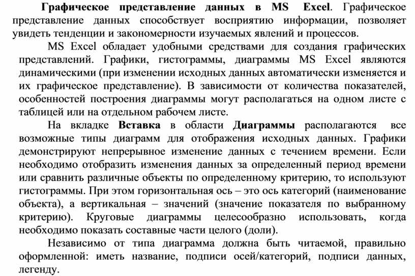 Графическое представление данных в MS Excel. Графическое представление данных способствует восприятию информации, позволяет увидеть тенденции и закономерности изучаемых явлений и процессов.