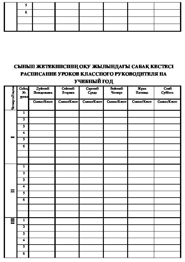 СЫНЫП ЖЕТЕКШІСІНІҢ ОҚУ ЖЫЛЫНДАҒЫ САБАҚ КЕСТЕСІ