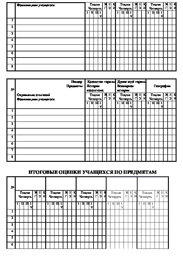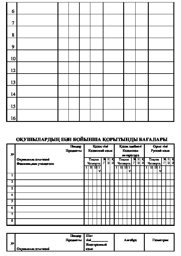 ОҚУШЫЛАРДЫҢ ПӘН БОЙЫНША ҚОРЫТЫНДЫ БАҒАЛАРЫ