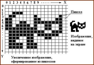 составляется из мельчайших точек пикселов) – цветных квадратиков одинакового размера. |