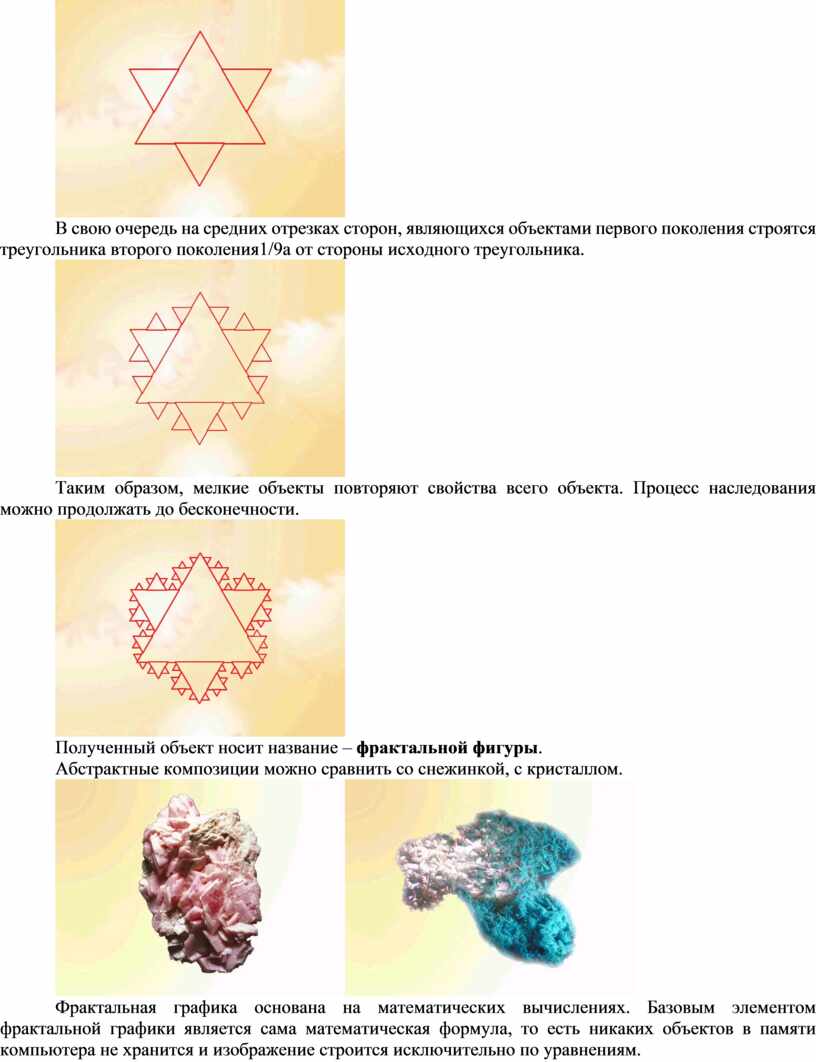 В центре находится простейший элемент – равносторонний треугольник, который получил название- фрактальный.