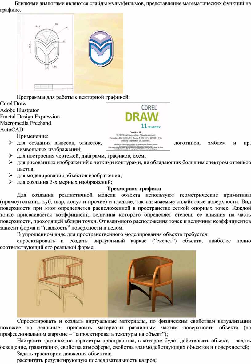 для создания вывесок, этикеток, логотипов, эмблем и пр. символьных изображений; для построения чертежей, диаграмм, графиков, схем; для