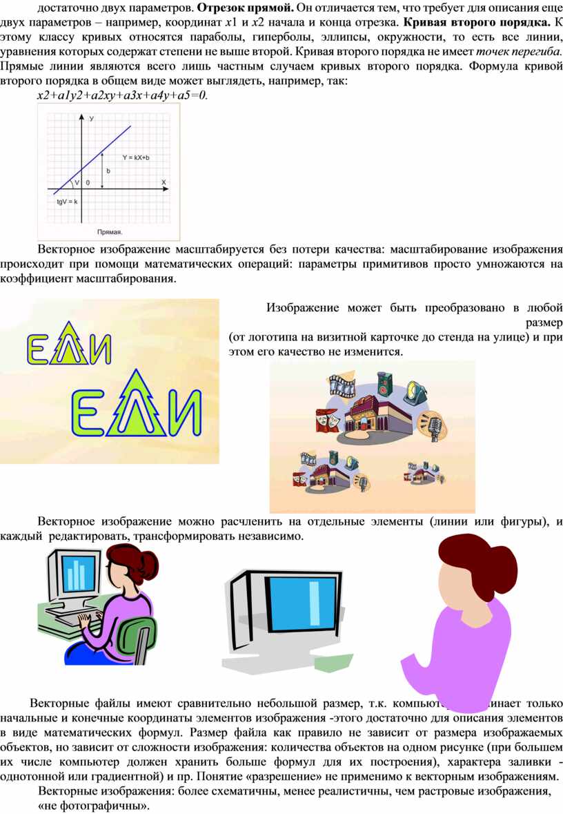 Векторные изображения: более схематичны, менее реалистичны, чем растровые изображения, «не фотографичны».