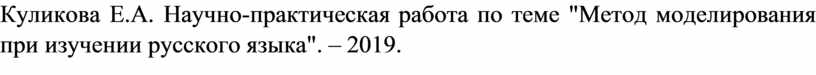 Куликова Е.А. Научно-практическая работа по теме "Метод моделирования при изучении русского языка". – 2019.