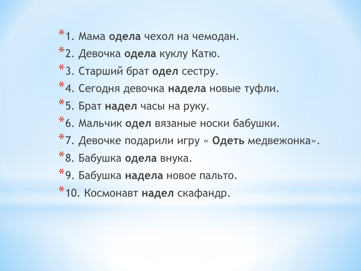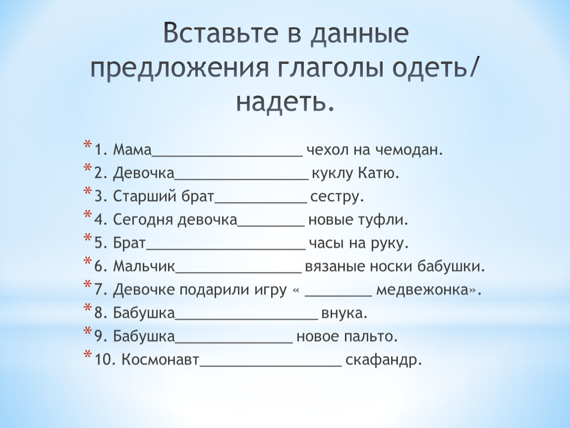 Вставьте в данные предложения глаголы одеть/ надеть.