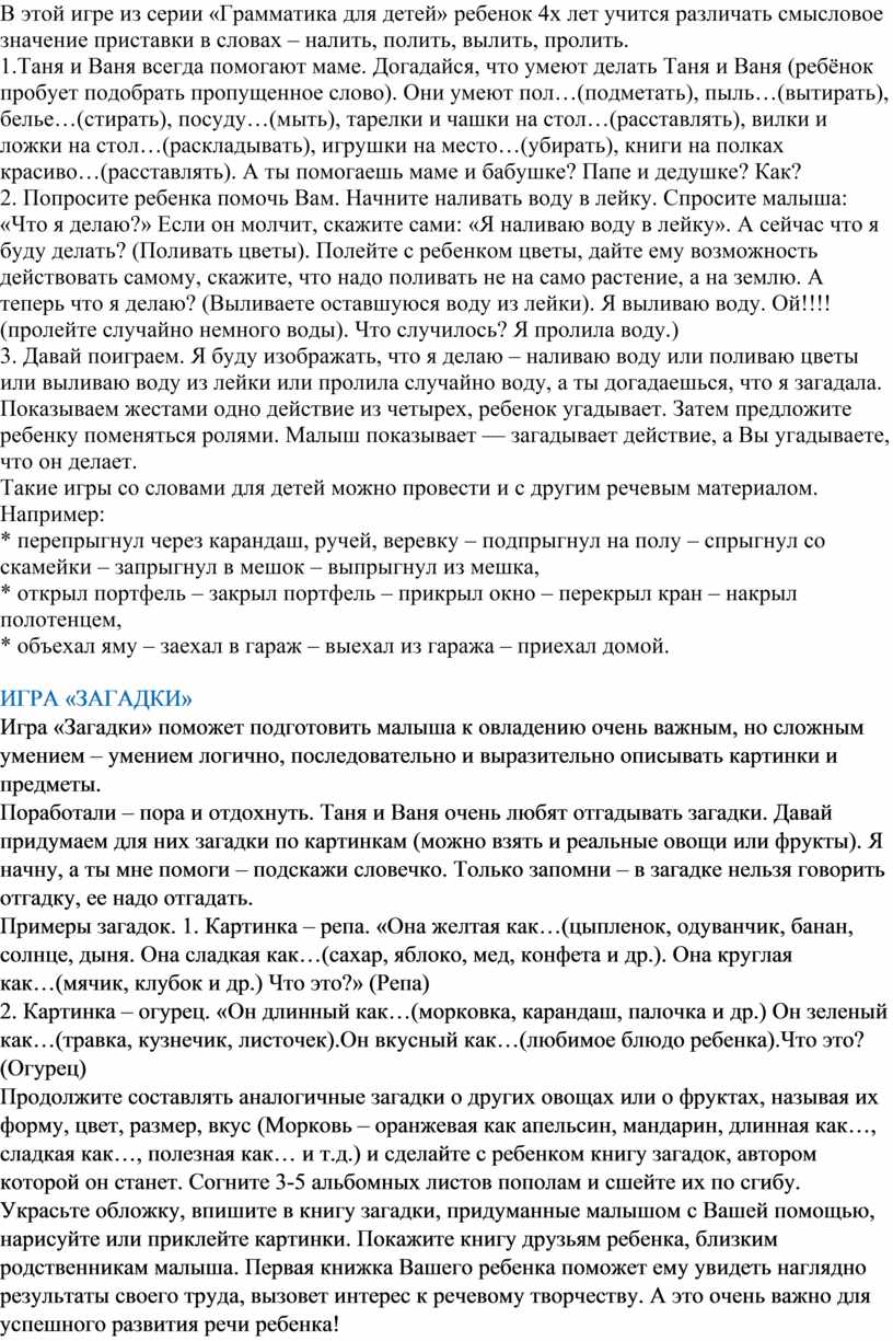 * Игры из серии «Грамматика для детей» требуют тактичности от взрослого,