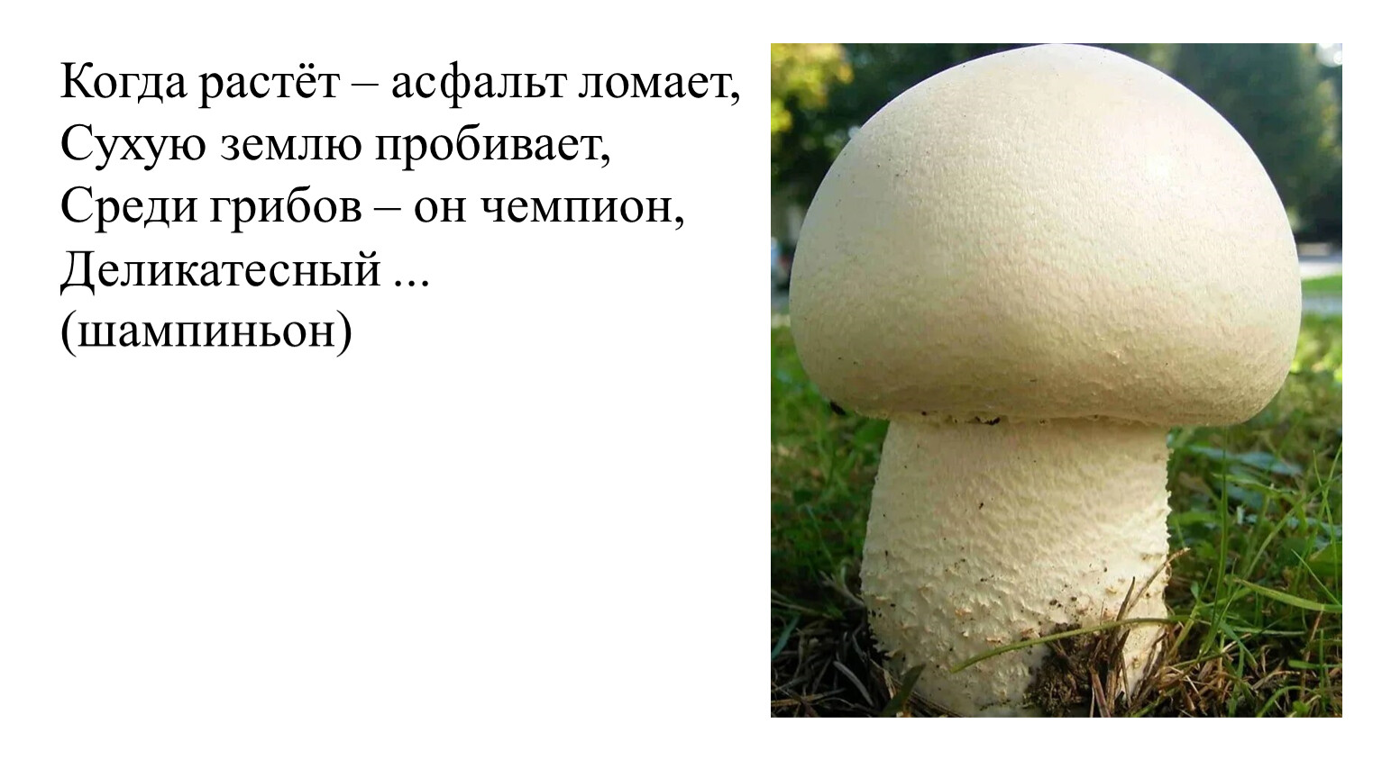 Когда растёт – асфальт ломает,Сухую землю пробивает,Среди грибов – он чемпион,Деликатесный ...